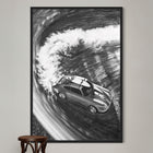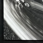 The fifth work in the series dedicated to the Porsche '89 DLS Singer. Created using an experimental technique: a custom propeller tool was used to achieve a unique drift texture. The charcoal dust seems to literally erupt from beneath the wheels, frozen in the dynamics of the moment.